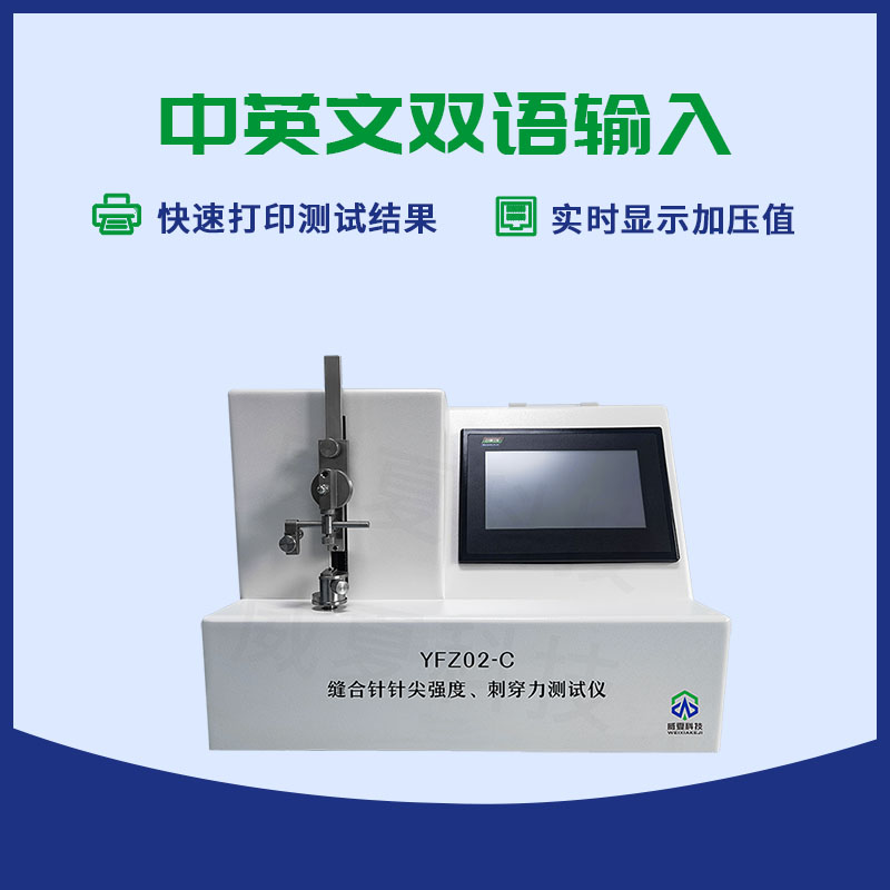 威夏科技 YFZ02-C 缝合针针尖强度、刺穿力测试仪是国家检验生产厂家产品性能的高效检测设备。测试操控范围包括:测试项目、公称规格、弧形、缝针直径、打印设定、测试、上行、下行、时间、标定,检定等功能设定。设备应用:缝合针针尖刺穿力和强度测试仪主要用于测定医用缝合针的针尖强度以及刺穿力的物理特性,是鉴定医用缝合针针尖的重要手段之一。