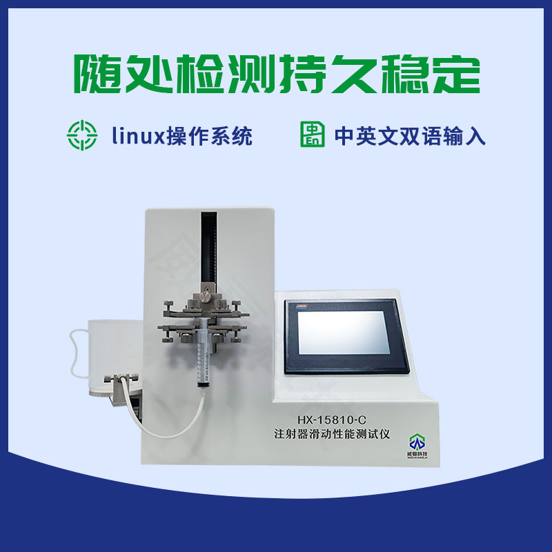 威夏科技 HX15810-C 注射器滑动性能测试仪是国家检验生产厂家产品性能的高效检测设备。设备应用:HX15810-C注射器滑动性能测试仪主要用于测定医用注射器的滑动性能物理特性,是鉴定医用注射器的重要手段之一。测试操控范围包括:公称容量、打印设定、测试、前移、后移、左移、右移、时间、标定,检定等功能设定。