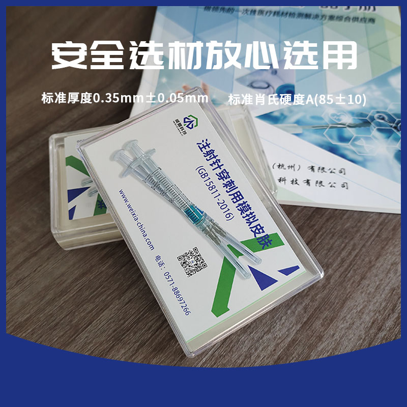 威夏科技注射针穿刺力模拟皮肤用于注射针针尖刺穿力测试仪试验,也用于留置针、输液针或活检针的穿刺检测,供应各大检测机构,是全国各大医疗器材监督局实际使用产品,本产品符合GB15811标准规定。