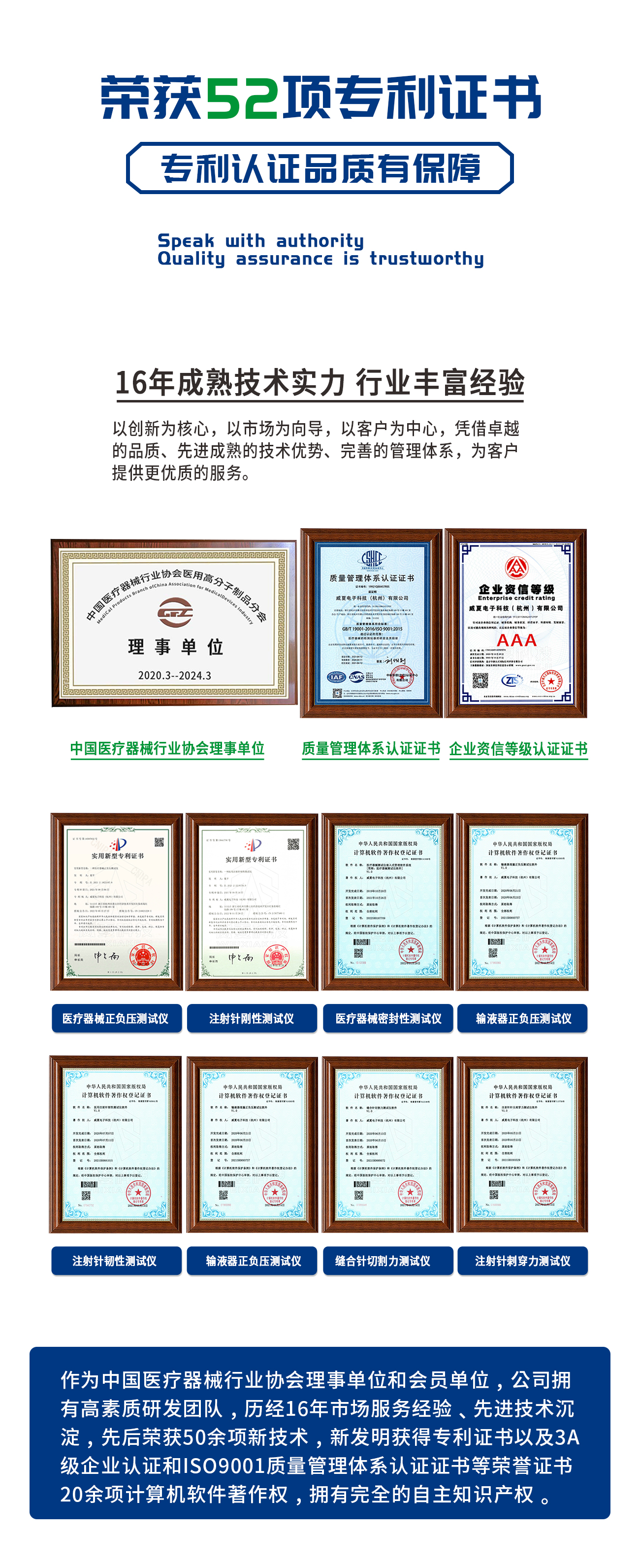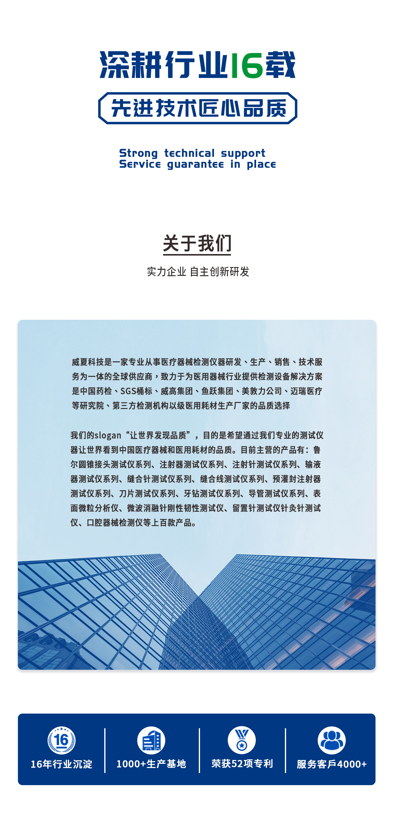 威夏科技 YFZ02-C 缝合针针尖强度、刺穿力测试仪是国家检验生产厂家产品性能的高效检测设备。测试操控范围包括:测试项目、公称规格、弧形、缝针直径、打印设定、测试、上行、下行、时间、标定,检定等功能设定。设备应用:缝合针针尖刺穿力和强度测试仪主要用于测定医用缝合针的针尖强度以及刺穿力的物理特性,是鉴定医用缝合针针尖的重要手段之一。