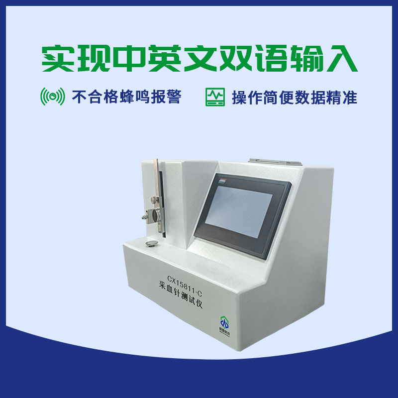 CX15811-C 采血针测试仪是国家检验生产厂家产品性能的高效检测设备,用于测定医用一次性使用采血针性能的物理特性,是鉴定一次性使用采血针的重要手段之一。可编程PLC+ARM控制器,自选中英文触摸屏,力值传感器,传动装置,机载打印机等组成,实时显示穿刺力曲线测试结果及最大刺穿力数据。可现实F0到F5峰值数据。